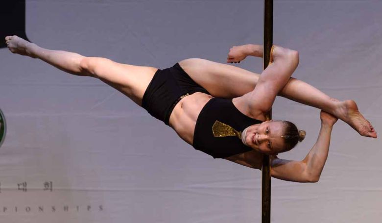 polina Makeeva 선수가 12일 경기도 화성시 동탄복합문화센터 반석아트홀에서 열린 2025한국폴스포츠선수권대회 및 2025국가대표선발전에서 폴스포츠 연기를 선보이고 있다.