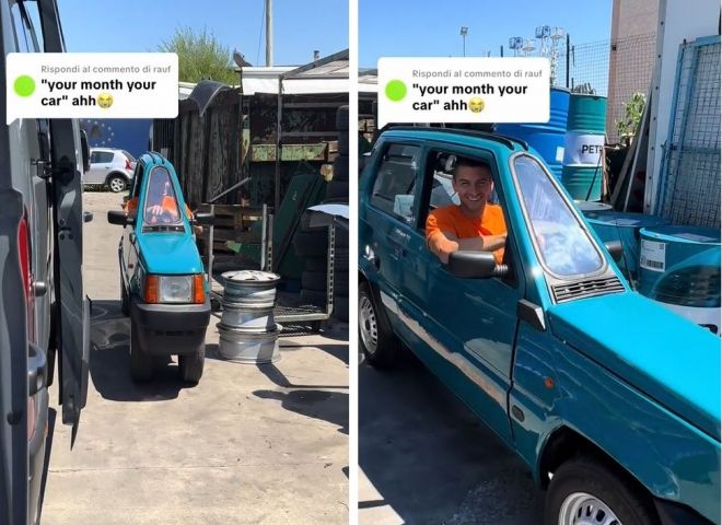 마라치는 틱톡 영상을 통해 차량 개조 과정을 공개했다. 먼저 차량 폭을 재본 후, 기존 피아트 판다에서 무려 37.8인치(약 96㎝)를 잘라냈다. 이 과정에서 헤드라이트 하나와 앞 유리 대부분도 함께 제거됐다.