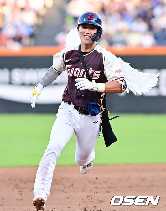 3회초 롯데 레이예스의 1타점 적시타때 1루 주자 전민재가 전력 질주하고 있다. 2025.07.12 / soul1014@osen.co.kr