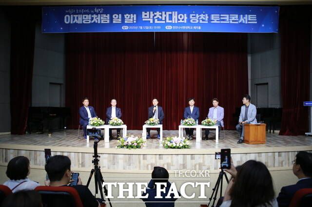 호남에 이어 충청에서 열린 이번 토크콘서트는 노종면 의원이 사회를 맡았고, 충남을 지역구로 둔 황명선 의원, 이재관 의원을 비롯해 박성준 의원, 김용만 의원이 패널로 참여해 박 후보에게 힘을 보탰다.