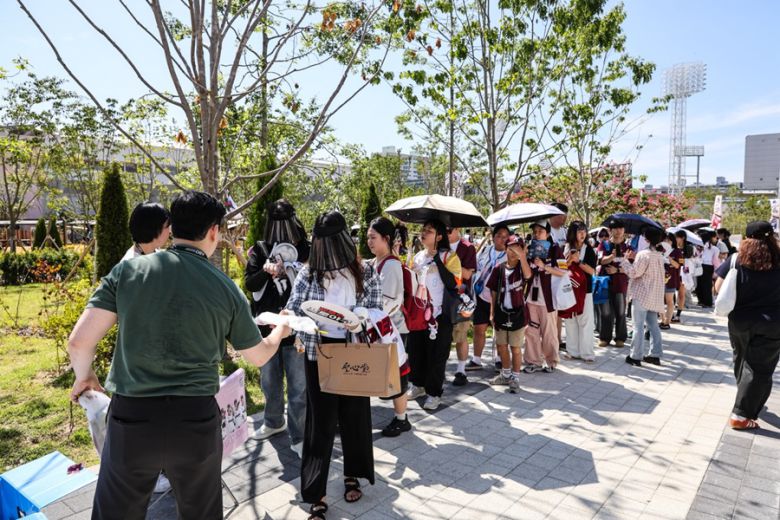 야구팬들의 축제 올스타전을 맞아 키움은 12일 오후 3시부터 대전 한화생명볼파크 외부 광장에서 야구장을 찾은 키움 팬 500명에게 부채, 자석, 랜야드, 아크릴 키링, 화장품 샘플 키트 등으로 구성된 ‘팬 기프트’를 선물했다.