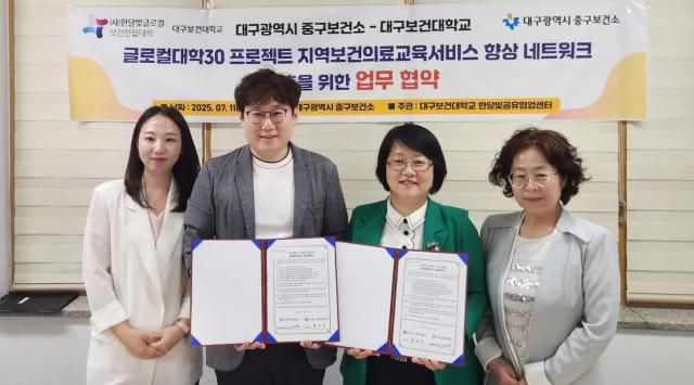 이번 협약은 건강 취약 계층의 보건의료 교육 지원과 지역사회 상생을 목표로, 협력을 통한 지속 가능한 보건의료 교육 서비스 체계를 구축하고자 마련됐다. 협약식에는 대구보건대학교 이전형 글로컬대학 사업단장, 대구 중구보건소 황석선 소장 등 관계자 10여 명이 참석했다.