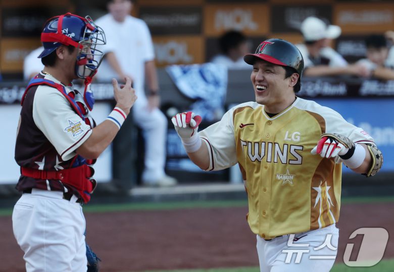 (대전=뉴스1) 김기태 기자 = 12일 대전 한화생명 볼파크에서 열린 ‘2025 신한 SOL뱅크 KBO 올스타전’에서 LG 박동원이 1회말 2사 2루 상황에서 투런 홈런을 친 뒤 환호하고 있다. 2025.7.12/뉴스1presskt@news1.krCopyright ⓒ 뉴스1. All rights reserved. 무단 전재 및 재배포, AI학습 이용 금지.이 기사의 카테고리는 언론사의 분류를 따릅니다.0공유하기