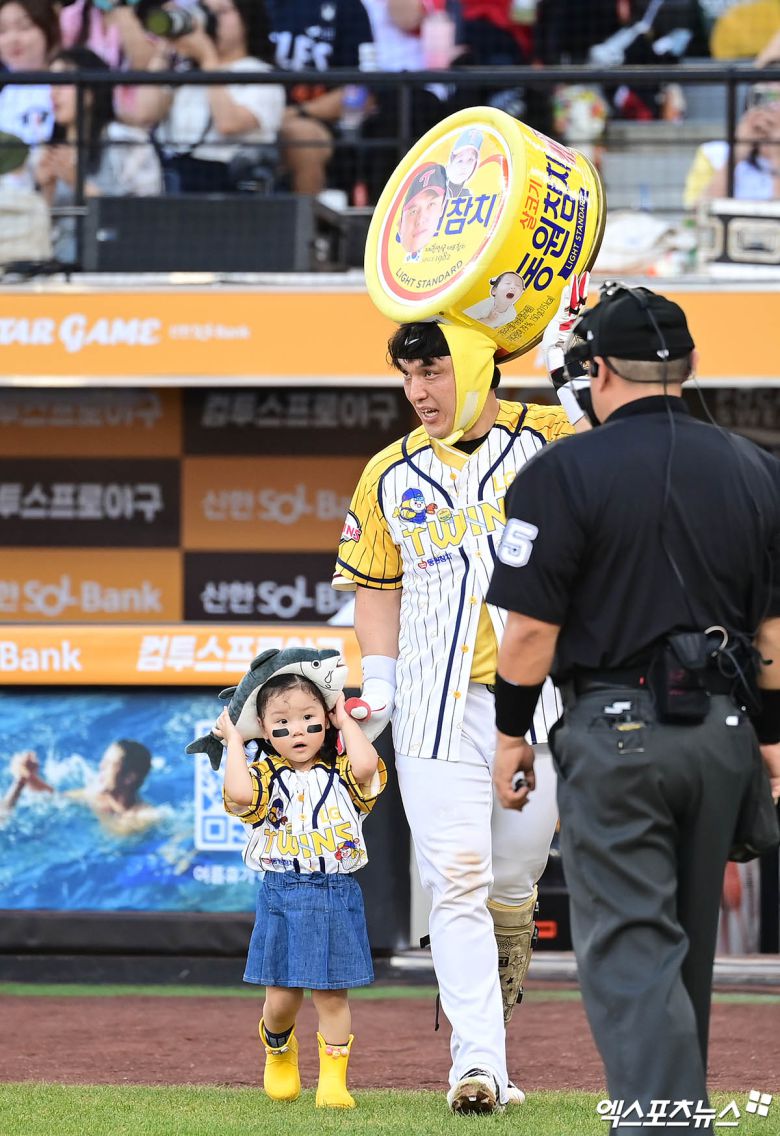 이날 박동원은 가장 유명한 별명인 '동원참치'를 활용해 탈을 쓰는 등 퍼포먼스를 펼쳤다. 그는 "구단은 물론 아내와 어떤 세리머니를 하면 좋을지 상의했다. 아내가 의견을 내줘 결정할 수 있었다"고 전했다.