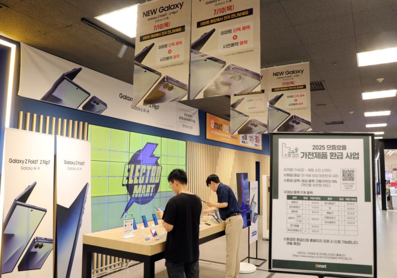 이마트만의 단독 혜택도 준비했다. ‘갤럭시Z 폴드7’와 ‘갤럭시Z 플립7’을 행사카드 전액 결제 시 할인 혜택을 받을 수 있다. 행사카드는 이마트eㆍ삼성ㆍKB국민(BC제외)ㆍ신한(BC제외)ㆍ현대ㆍ우리ㆍ롯데ㆍ하나(BC제외)다.
