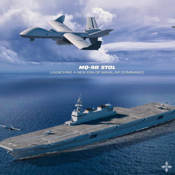 GA-ASI가 공개한 이미지를 보면, 'MQ-9B 단거리 이착륙 무인기, 해군 항공 우위의 새로운 시대를 열다'(MQ-9B STOL launching a new era of naval air dominance)라는 광고 문구 아래, 대형 무인기 MQ-9B '시 가디언'을 주인공으로, 그 아래쪽 함수(艦首)에 항공기 사출용 캐터펄트 2기가 눈에 띈다. 함(艦) 번호 '183'이 명기된 것으로 미뤄, 일본이 최근 항공모함으로 개수한 이즈모급 1번함 '이즈모함'이라는 것을 알 수 있다.
