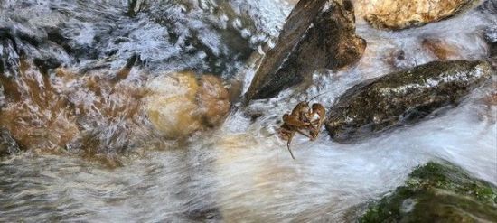 불어난 계곡물에서 사투를 벌이고 있는 어미 가재 모습