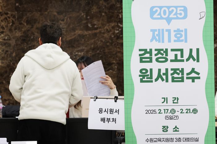2025년도 제1회 초졸·중졸·고졸 검정고시 원서 접수가 시작된 17일 경기도 수원시 장안구 수원교육지원청에서 응시생들이 원서를 작성하고 있다. 2025.2.17 xanadu@yna.co.kr. 연합뉴스