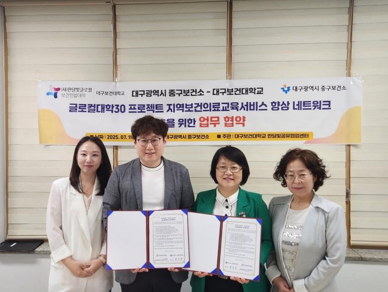 대구보건대학교 한달빛공유협업센터와 대구 중구보건소가 11일 건강취약계층을 위한 보건의료교육서비스 향상 네트워크 구축을 위한 업무협약을 체결했다.