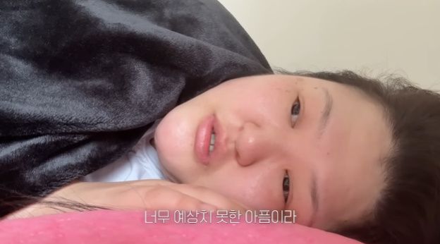 이날 이국주는 초췌한 몰골로 침대에 누운 채 카메라를 켰다. 그는 "오늘 너무 힘들다. 목이 아프고 몸이 뻐근하다고 해야하나? 이렇게까지 될 건 아닌데 너무 예상치 못한 아픔이라서 당황했다"고 고통을 호소했다.