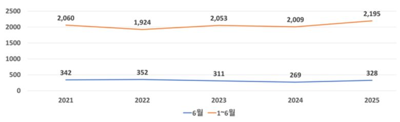 13일 산업통상자원부 국가기술표준원에 따르면, 2025년 1~6월 WTO 회원국들이 통보한 TBT 건수는 전년 동기(2009건) 대비 9.3% 증가한 2195건에 달했다.