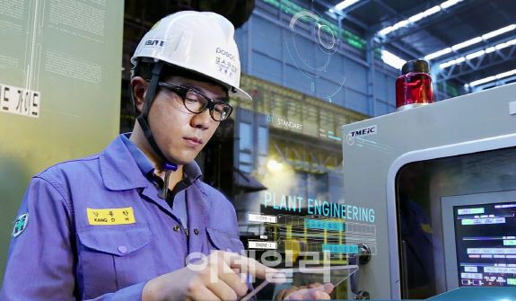 포스코DX 현장 엔지니어가 PLC 시스템을 통해 설비를 모니터링하고 있다.(사진=포스코DX) |