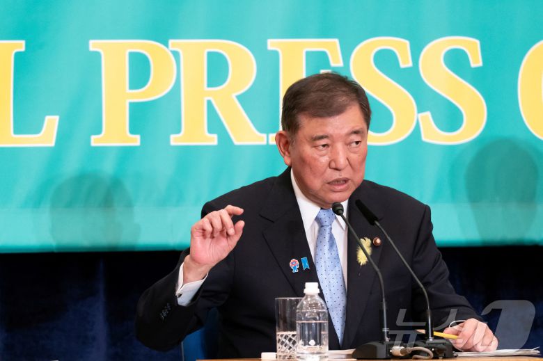 2일 이시바 시게루 일본 총리가 도쿄 일본기자클럽에서 열린 8개 정당 대표 토론회에 참석하고 있다. 2025.07.02 ⓒ 로이터=뉴스1 ⓒ News1 김지완 기자