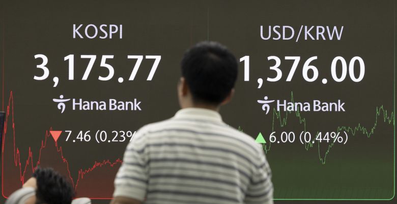 [서울=뉴시스] 김근수 기자 = 지난 11일 서울 중구 하나은행 본점 딜링룸 전광판에 지수가 나오고 있다. 이날 코스피는 전 거래일(3183.23)보다 7.46포인트(0.23%) 내린 3175.77에 마감했으며, 코스닥 지수는 전 거래일(797.70)보다 2.77포인트(0.35%) 상승한 800.47에 거래를 마쳤다. 뉴시스 |