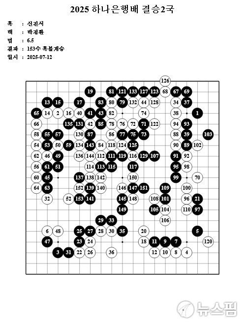 [서울=뉴스핌] 김용석 기자 = '바둑 최강자' 신진서 9단이 국내 최대 상금 규모의 '2025 하나은행 바둑 슈퍼매치' 결승에서 숙명의 라이벌 박정환 9단을 꺾고 우승을 차지. 우승상금 7500만원을 획득했다.