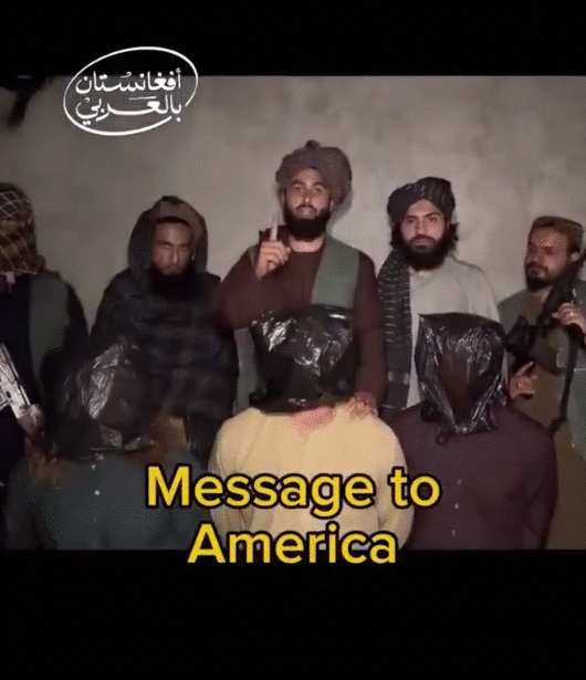 영상에서는 탈레반 전사처럼 차려입은 아프간 남성이 무릎을 꿇은 채 검은 비닐봉지를 뒤집어쓴 남성들 뒤에 서서 “미국에 전할 메시지가 있다”고 말한 뒤, 비닐봉지를 벗긴다. 그러자 인질 역할을 한 남성들이 웃으며 “아프라니스탄에 오신 걸 환영합니다”라고 말한다.