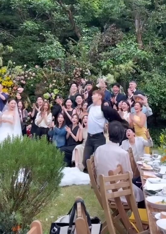 영상 속 조권은 결혼식 하객들 사이에서 다양한 포즈로 부케를 정확히 캐치해냈다.