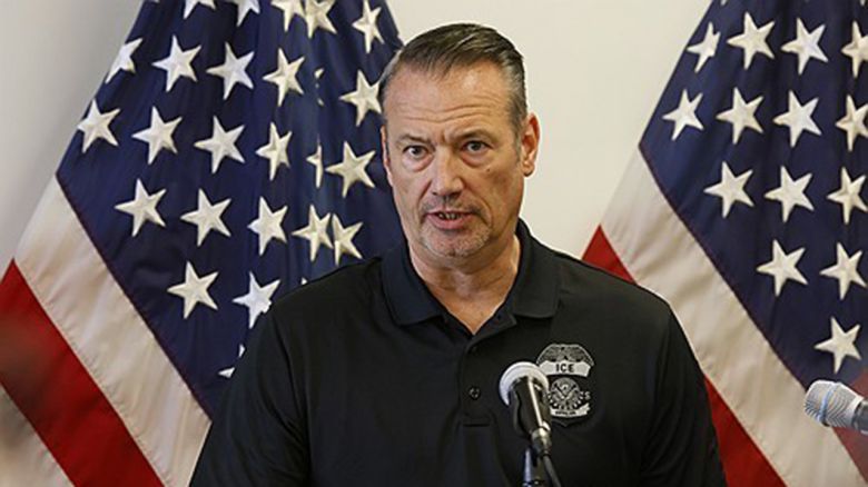 ▲ 지난달 12일 미국 이민세관단속국의 토드 라이언스 국장 대행이 LA에서 일어난 이민 단속 항의 시위에 관한 기자회견을 열고 있다.