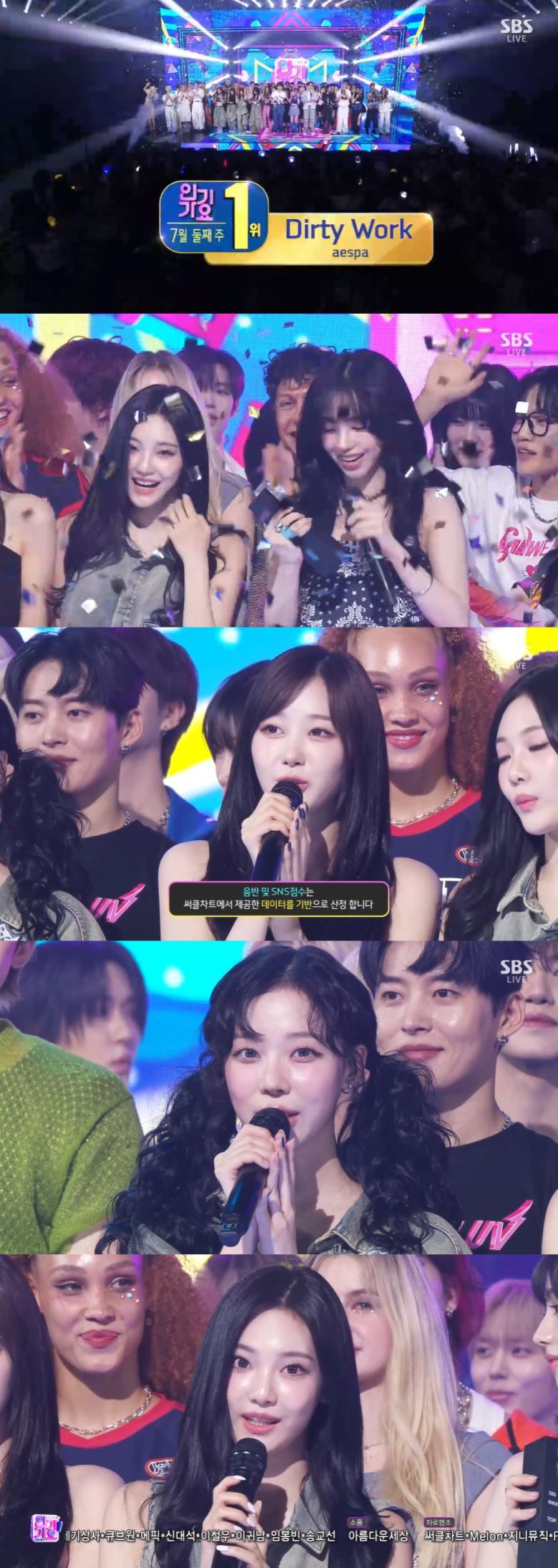 (엑스포츠뉴스 우선미 기자) 에스파가 '더티 워크(Dirty Work)'로 7월 둘째 주 '인기가요' 1위를 차지했다.
