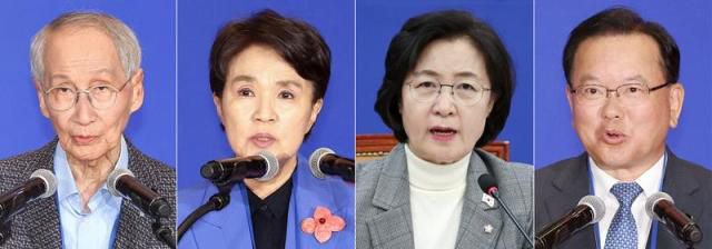 (왼쪽부터) 유럽연합(EU) 특사단장 윤여준 전 환경부 장관, 프랑스 특사단장 강금실 전 법무부 장관, 영국 특사단장 추미애 의원, 인도 특사단장 김부겸 전 국무총리 [사진=연합뉴스DB] |