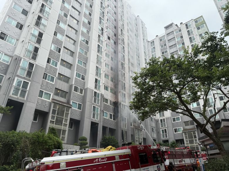불은 아파트 주민들이 신고했다. 소방차와 소방대원들은 현장에 도착해 낮 12시42분께 화재진압과 인명구조에 나섰다. 옥상에 대피해 있던 아파트 주민 4명은 사다리차를 이용해 구조했다. 소방당국은 오후 1시57분께 불을 모두 껐다. 경찰과 소방서는 화재원인 등을 조사하고 있다.