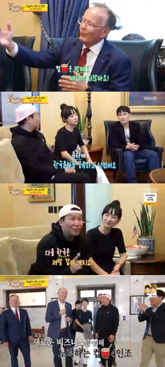 13일 방송된 KBS 2TV '사장님 귀는 당나귀 귀'에서는 송정훈이 유타 주정부의 도움을 받기 위해 나서는 모습이 전파를 탔다.