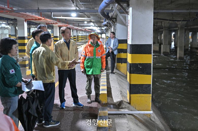 김이강 광주 서구청장이 13일 서구 양동시장 하부주차장과 태평교 일대에서 집중호우 대비 현장점검을 실시하고 있다. 광주 서구 제공. |