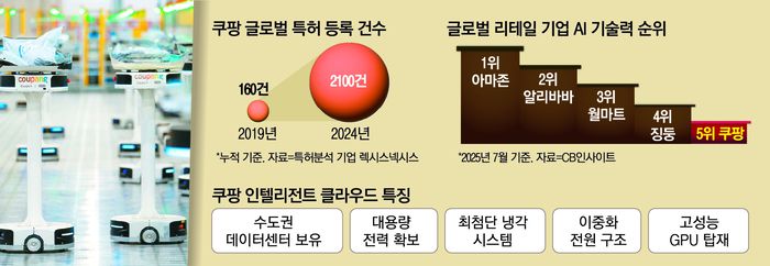 쿠팡이 보유한 AI 등 기술 특허는 2100개(2024년 기준)로 2019년(160개) 대비 13배 늘었다.