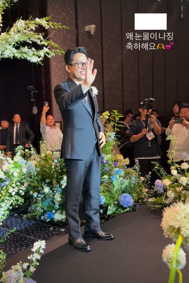 안경을 쓰고 턱시도를 입은 김준호는 버진로드 끝에서 김지민을 기다렸다. 돌아가신 아버지를 대신해 김지민의 손을 잡은 사람은 김대희였다.
