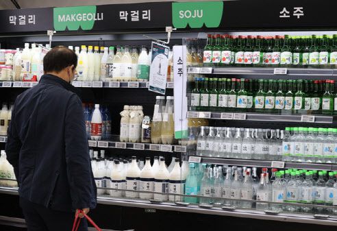 서울의 한 대형마트 식음료 매장을 찾은 고객이 다양한 주류를 살펴보고 있다. 연합뉴스