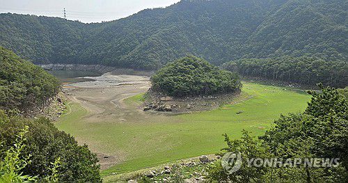 바닥 드러낸 강릉 식수원 오봉저수지 상류[연합뉴스 자료사진]