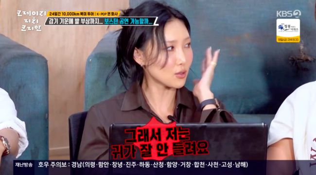 곽튜뷰는 “터지면 귀 다친 거 아니냐”라고 걱정했고, 화사는 “그래서 저는 이쪽(왼쪽 귀) 귀가 잘 안 들린다”라고 말했다. 깜짝 놀란 전현무는 “이 공연 때문에?”라고 되물었고, 화사는 “그건 아니다. 저는 크게 들어야 해서 고막이 조금 안 좋다. 이명도 항상 들린다”라고 털어놔 눈길을 끌었다.