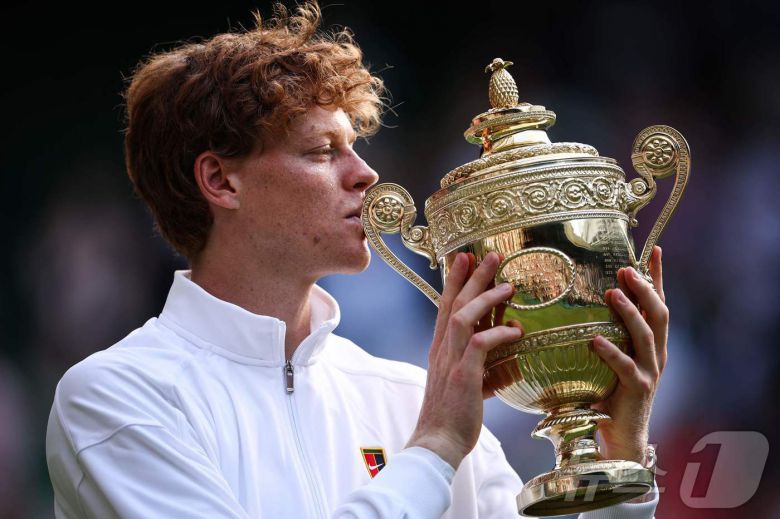 (서울=뉴스1) 이상철 기자 = 남자 테니스 단식 세계랭킹 1위 얀니크 신네르(이탈리아)가 카를로스 알카라스(2위·스페인)를 꺾고 윔블던 우승컵을 들었다.