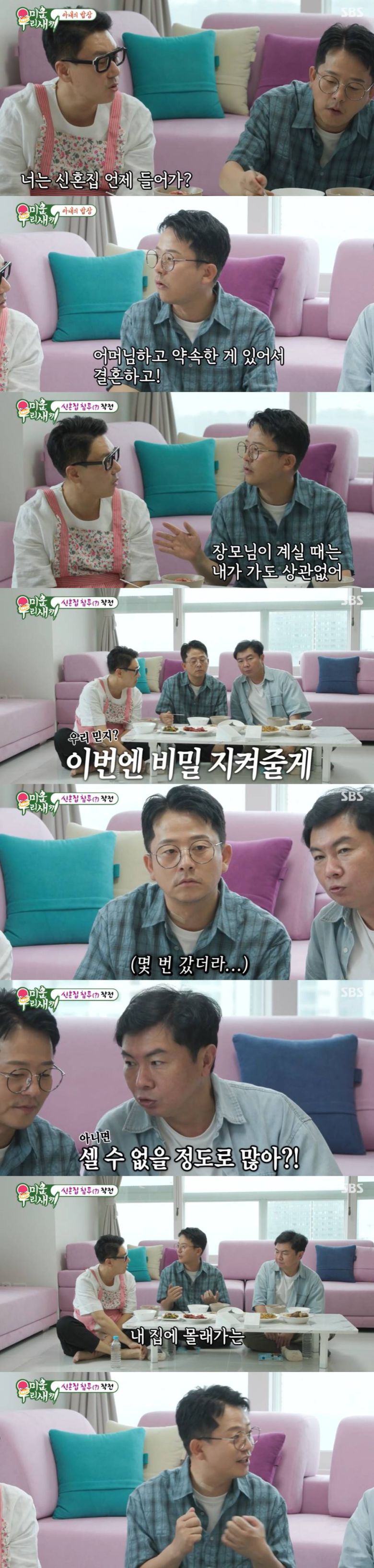 김준호는 "결혼하고 들어간다. 어머님하고 약속한 게 있다. 결혼하고 (들어가기로)"라고 이야기했다. 그러나 이상민은 김준호에게 "너 며칠 전에 신혼집에서 잔다고 하지 않았어?"라고 물었다.