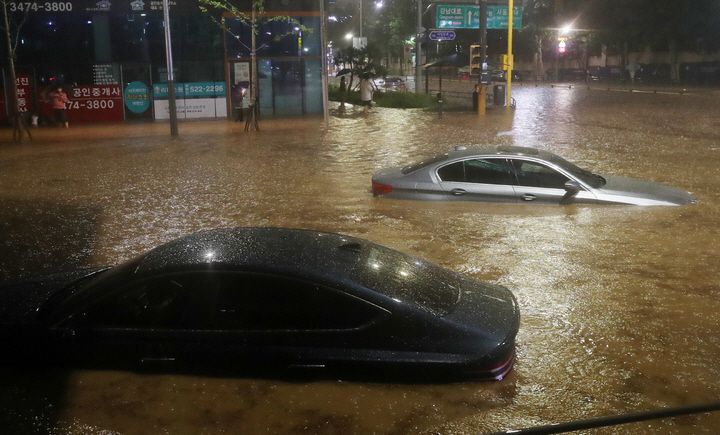 서울과 경기북부 등 수도권에 폭우가 내린 2022년 8월 서울 강남역 일대 도로가 침수된 모습. |