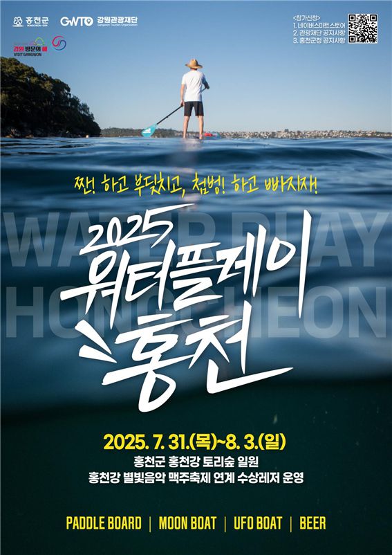 [스포츠서울ㅣ춘천=김기원기자]강원관광재단(대표이사 최성현, 이하 재단)은 홍천군청(군수 신영재, 이하 홍천군)과 7월 31일(목)부터 8월 3일(일)까지 4일간 강원특별자치도 홍천군 홍천강 토리숲 일원에서 ‘2025 워터플레이 홍천’을 운영한다.
