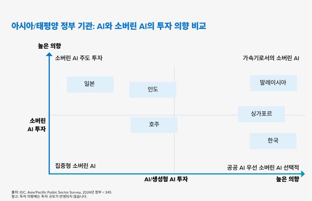 아시아태평양 지역 6개국 정부기관 3분의 1은 올해 소버린 AI에 투자할 의향이 있다고 답변했다. 한국의 경우 지난해 소버린 AI 투자는 27%로 아태지역 평균인 33% 보다 낮았지만, 2026년 투자 계획에 대해서는 두배 늘어날 것으로 전망했다.