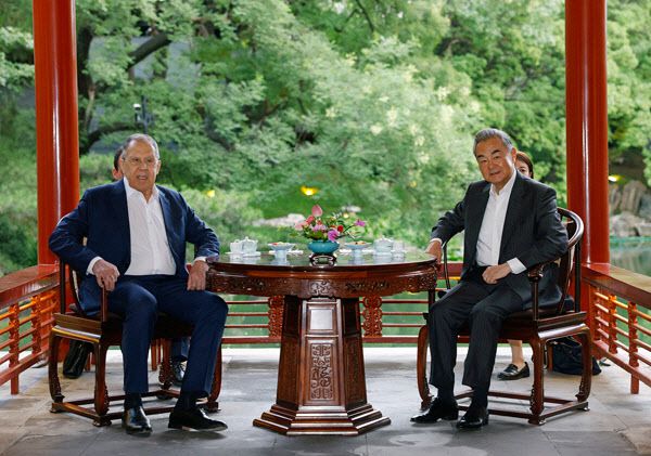 中 왕이, 베이징서 러 외무장관 환대…“도전에 공동 대응”