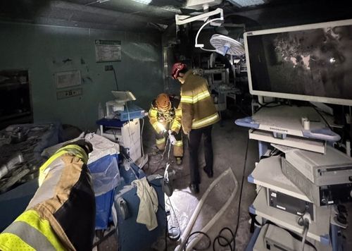 수술실 내부와 의료기기 등을 태운 불에서 연기가 나면서 의료진 35명이 연기를 마셨고, 일부는 응급실에서 산소 치료를 받고 있다.