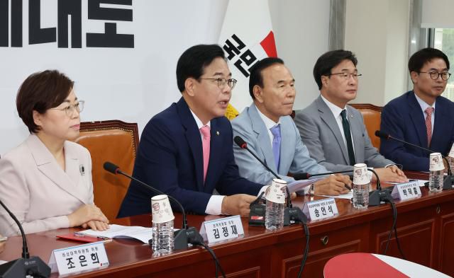 송언석 비상대책위원장 겸 원내대표는 이날 국회에서 열린 비상대책회의에서 "갑질 장관 강선우, 표절 장관 이진숙, 커피 장관 권오을, 도로투기 장관 조현, 쪼개기 장관 정동영 의원 등 무자격 오적은 청문회를 받을 자격조차 없다"며 이같이 말했다.