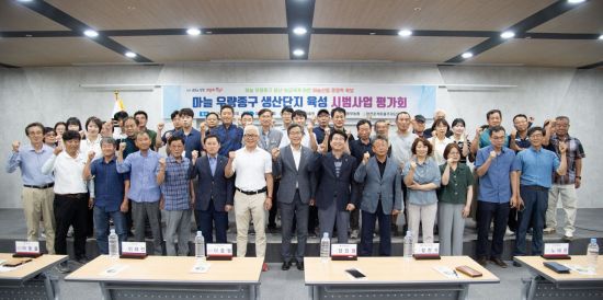 경남 합천군은 동부농협 농산물산지유통센터에서 '마늘 우량 종구 생산단지 육성 시범사업 평가회'를 개최했다고 14일 밝혔다.