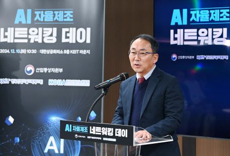 박동일 산업통상자원부 제조산업정책관이 지난해 12월 서울 대한상공회의소에서 열린 인공지능(AI) 자율제조 네트워킹 데이에서 인사말하고 있다. (사진=산업부) |