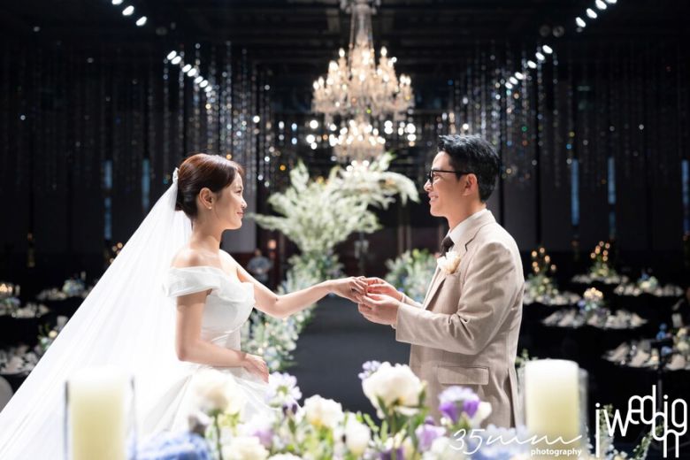 신부의 '절친'인 배우 황보라의 13개월 아들이 예물 화동을 맡아 아장아장 버진 로드를 걸어와 예물을 전달했고, 김대희가 성혼 선언문을 낭독하며 결혼식이 진행됐다.