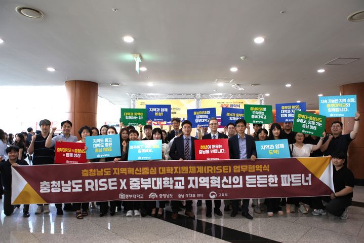 [금산=뉴시스]유순상 기자 = 중부대학교는 충남도청에서 '충남 RISE(지역혁신중심 대학지원체계) 사업' 업무협약을 맺고 본격적으로 사업추진에 나섰다고 14일 밝혔다. 이날 지역-대학 간 전략적 연계와 고등교육 혁신을 위한 상호 협력 의지를 확인했다.