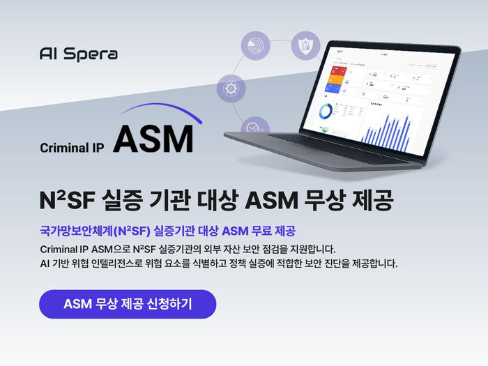 AI스페라가 국가망보안체계(N²SF) 정착과 실행력 강화를 위해 공공기관 특화 공격표면관리(ASM) 솔루션을 무상 지원한다.