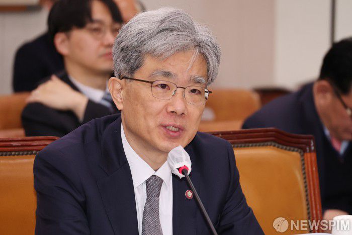김상환 전 대법관이 26일 신임 헌법재판소장 후보자로 지명됐다. 사진은 김 후보자가 국회 법제사법위원회 전체회의에서 질의에 답하고 있는 모습. 2025.6.26 leehs@newspim.com