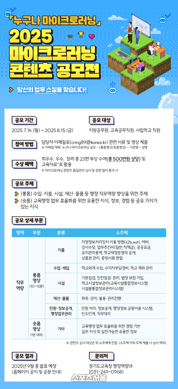-지방공무원, 교육공무직원, 사립학교 직원 대상...경험을 담은 숏폼·롱폼 마이크로러닝 콘텐츠 공모