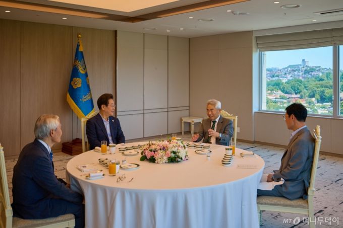 [서울=뉴시스] 이재명 대통령이 11일 서울 용산 대통령실에서 조갑제 조갑제닷컴 대표, 정규재 전 한국경제 주필과 오찬 회동을 하고 있다. (사진=대통령실 제공) 2025.07.11. photo@newsis.com *재판매 및 DB 금지 /사진= |