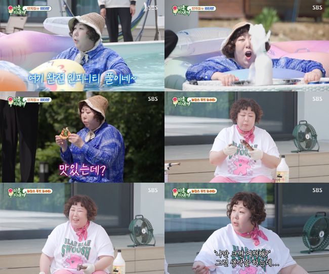 이어 지하수로 가득 채운 수영장에서 워터밤을 즐기기 시작한 신기루는 초대형 홍학 튜브에 올라타는 과정에서 예상치 못한 몸 개그까지 펼치며 웃음을 안겼다. 여기에 그는 플로팅 바구니 화채 분수쇼에 소녀처럼 기뻐하는가 하면 새카맣게 탄 피자 마저 맛있게 먹으며 보는 이들의 군침을 자극했다.