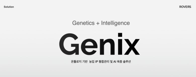 로버스는 종자 IP의 발굴·거래·상업화 전 과정을 데이터 기반으로 통합하는 품종 IP 플랫폼을 구축하고 있으며, 자체 솔루션인 Genix를 통해 글로벌 품종 IP 상업화를 기존 대비 50% 이상 빠르게 실현하고 있다. 41만개 이상의 글로벌 품종 데이터를 활용해 바이어의 재배 환경과 시장 수요에 최적화된 품종을 정밀 매칭하고, 계약·검역·유통까지 상업화를 지원한다.